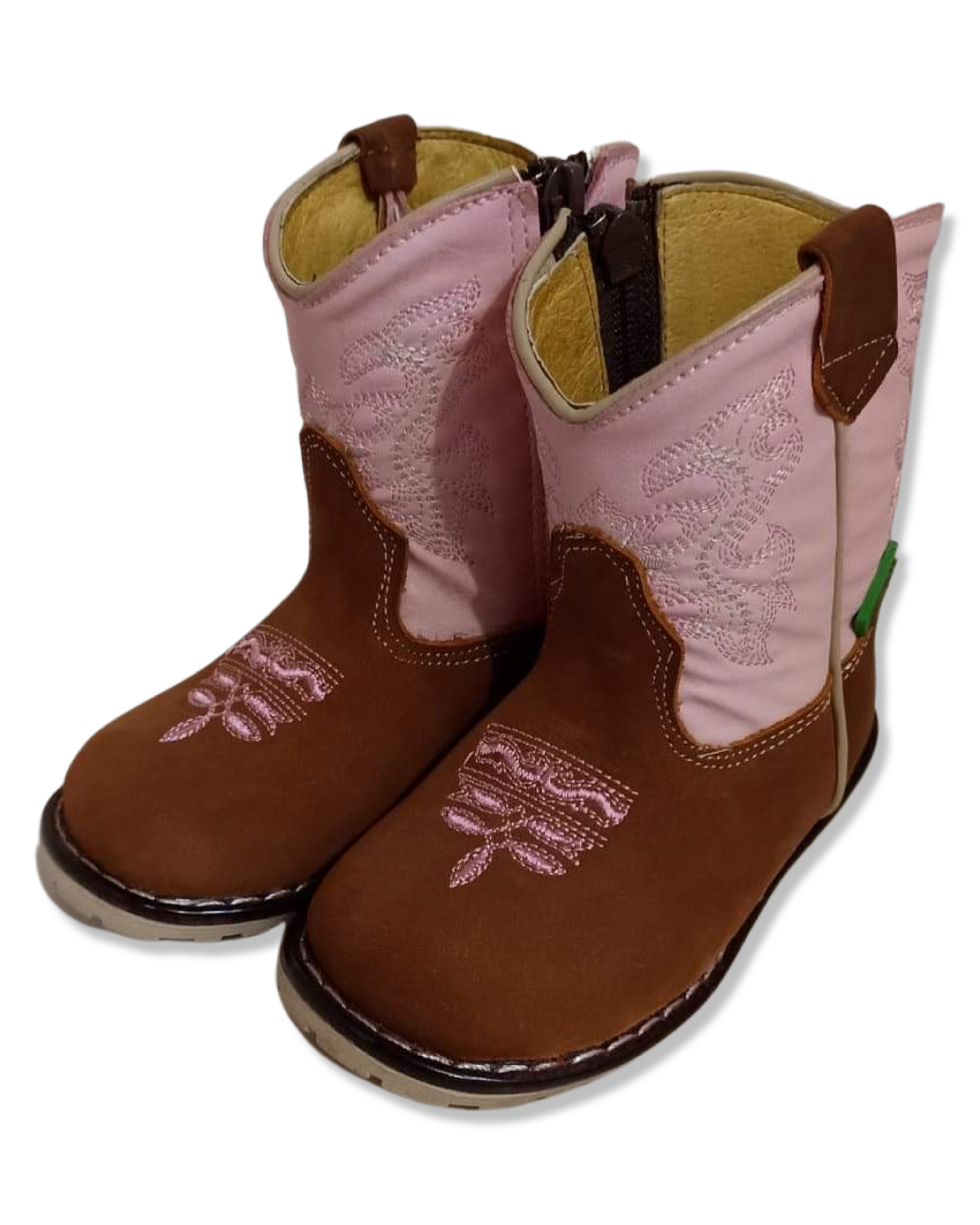 botita vaquera para niñas pequeñas en color tang con el tubo en color rosa con zíper más comodidad.